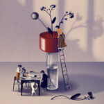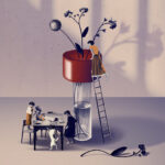 Per What’s in a Lamp?, l’artista torinese Beppe Conti interpreta le lampade non come semplici sorgenti di luce, ma come strumenti che rendono visibile l’invisibile. Nei suoi digital collage, la luce delle lampade Foscarini fa emergere frammenti e strati nascosti, generando spazi onirici e suggestivi.