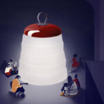 Nel suo lavoro per What’s in a Lamp?, il progetto editoriale con cui Foscarini invita artisti e creativi di discipline diverse – illustratori, fotografi, scultori, animatori – a reinterpretare le proprie lampade secondo una prospettiva personale e libera, Arévalo mette in scena un dialogo tra i designer e le lampade che hanno creato.