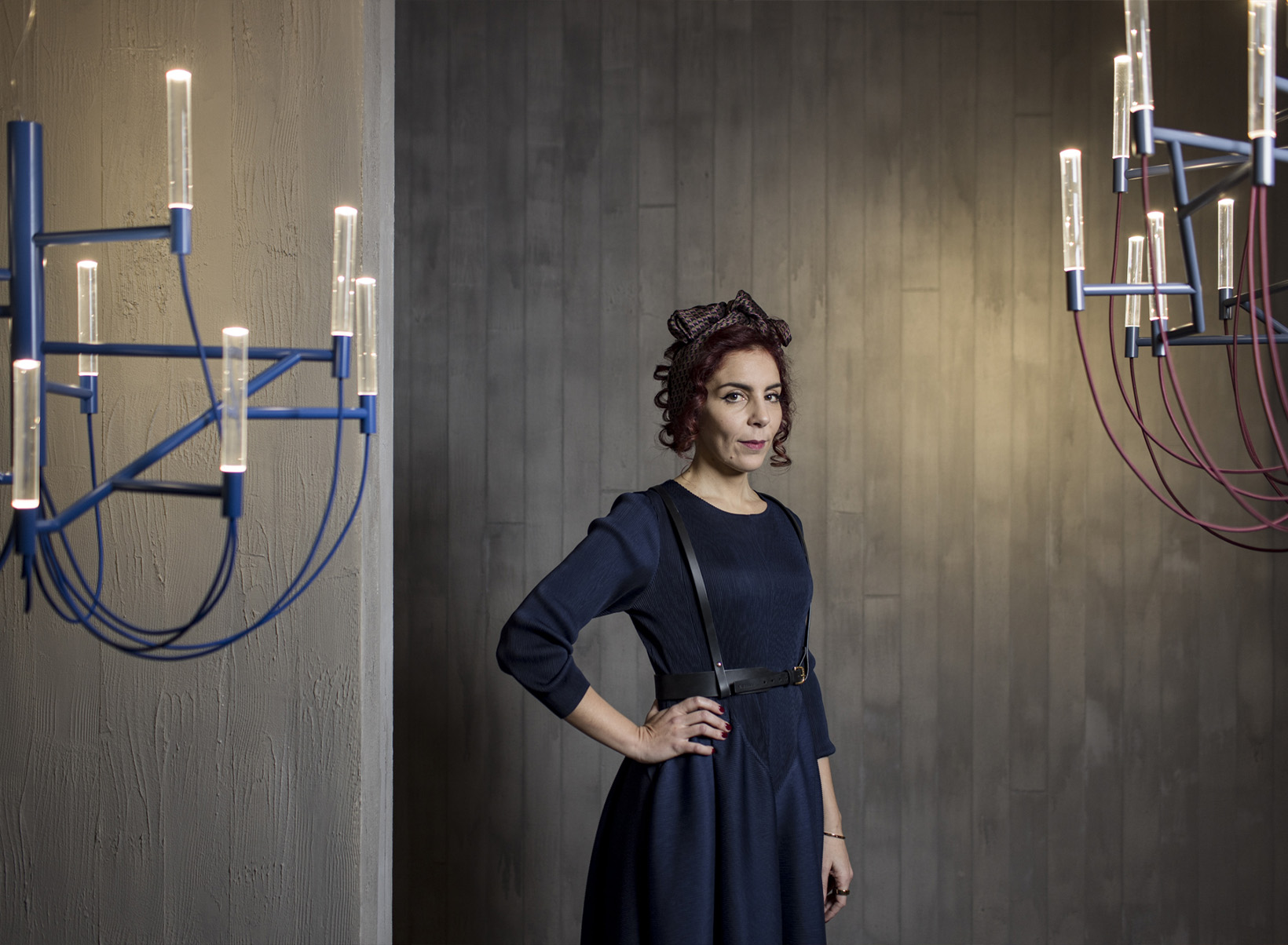“Le lampade mi affascinano, la luce di una lampada in una casa ci definisce più di una sedia. In questa serie tutto è più etereo, l’oggetto del desiderio è in alto, quasi da sfiorare con la punta delle dita.”