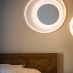 Bahia, eine asymmetrische Formenkomposition, ist eine große Decken- und Wandlampe, die mit ihrer Reduktion auf das Wesentliche und dem magischen Spiel aus Licht und Schatten den Raum schmückt und beleuchtet.