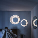 Eine vielseitige Beleuchtungslösung, die Bahia-Lampe bietet sowohl reflektiertes als auch diffuses Licht und ermöglicht eine flexible Installation als Decken- oder Wandleuchte. Ihr verführerisches Design erinnert an die faszinierende Schönheit eines Archipels aus der Vogelperspektive mit seinen beeindruckenden Schattierungen und konzentrischen Bereichen. Bestehend aus drei, im Spritzgussverfahren hergestellten und asymmetrisch montierten ovaloiden “Tellern” aus matt-weißem Polycarbonat. Der größte Teller dient als Wandhalterung, während die beiden zentralen Teller die Beleuchtungstechnik und das elektronische Vorschaltgerät verbergen. Mit ihrer geringen Tiefe gestaltet sie den Raum, auch dank der Möglichkeit von Mehrfachkompositionen gemeinsam mit dem kleineren Modell, um an der Decke leuchtende Inselgruppen entstehen zu lassen.