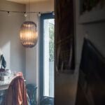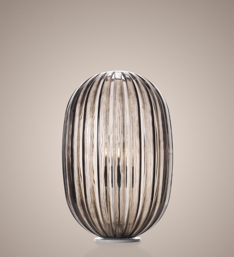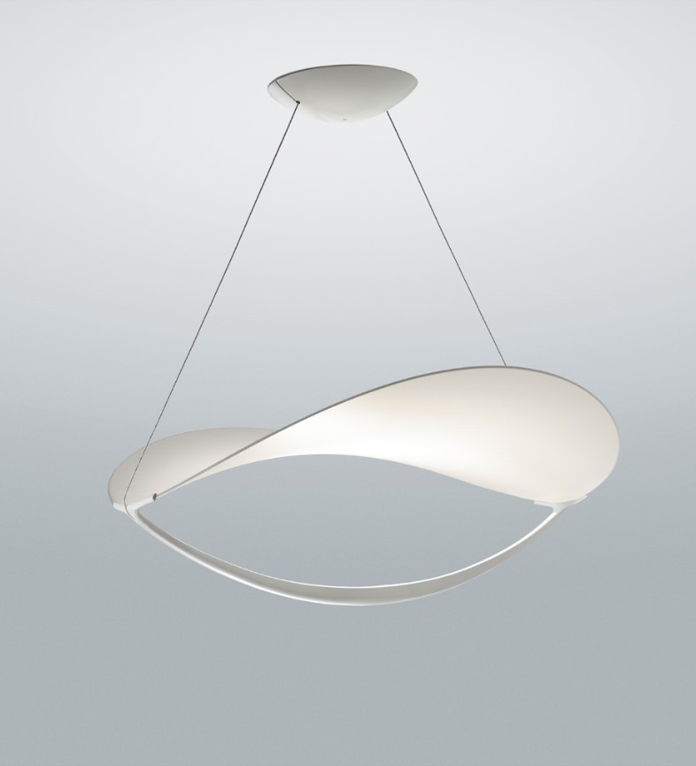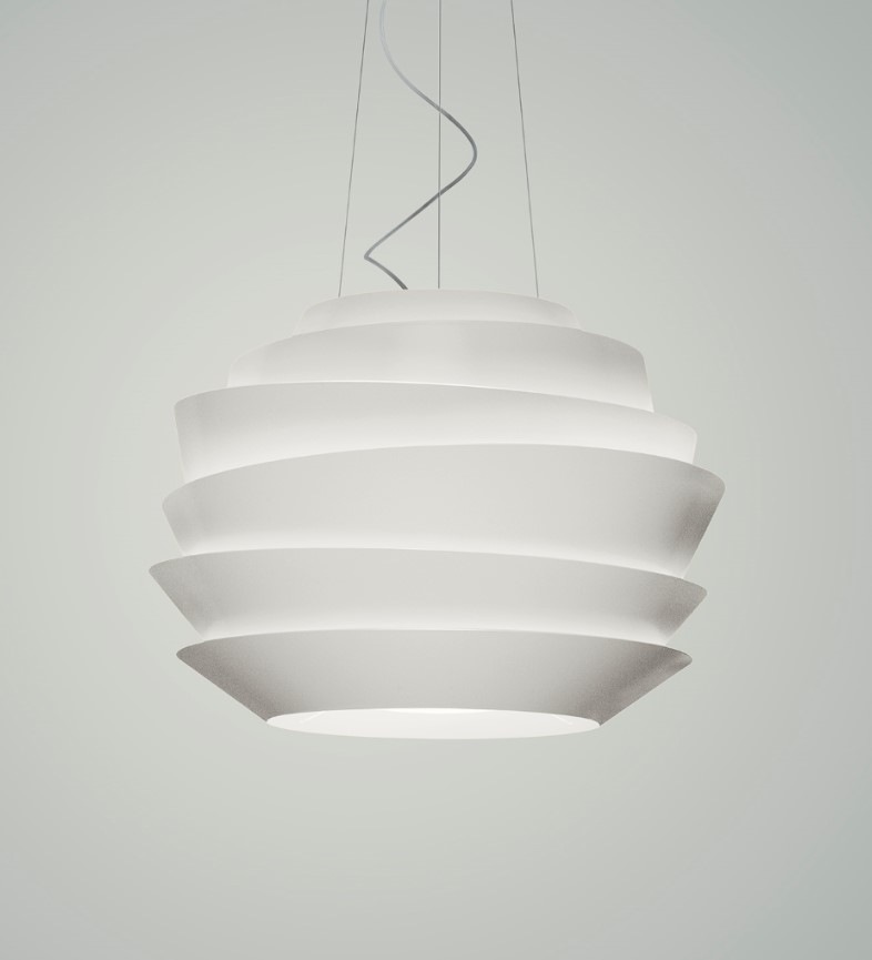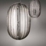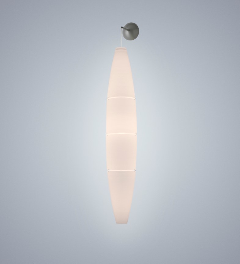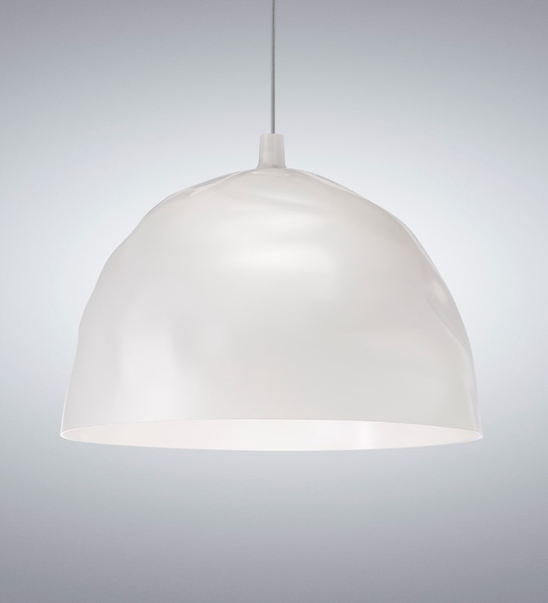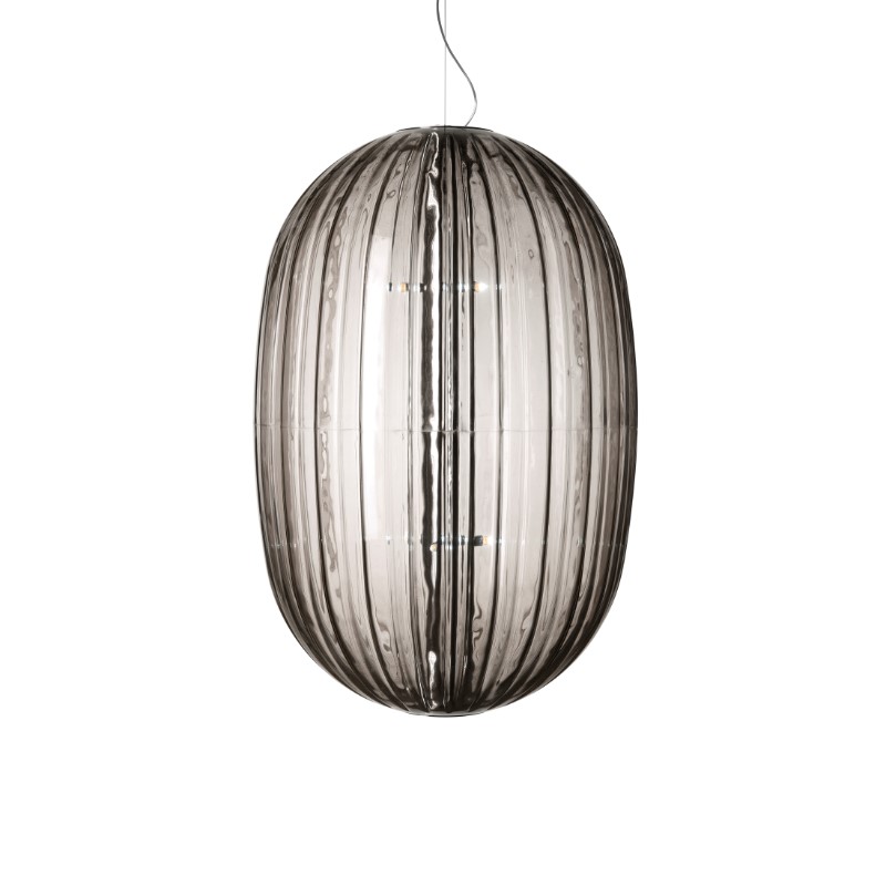 Una lampada a sospensione che si ispira nella forma e nei colori alle perle di vetro della tradizione veneziana, ma è realizzata in policarbonato trasparente. La superficie è caratterizzata da lievi imperfezioni che ricordano il vetro artigianale e fanno vibrare la luce. Due misure per progetti su grande scala o più contenuti.