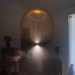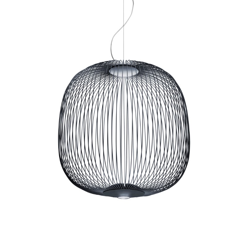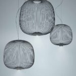 Spokes esprime una sensazione di leggerezza e movimento. Come attraverso un magico e geometrico reticolo, la luce filtra dall’interno, proiettando un caleidoscopio di vuoti e di pieni. La forma della lampada a sospensione Spokes 2 ricorda una lanterna o una voliera.