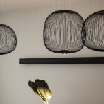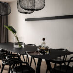 Im Herzen von Casa K bereichert eine Komposition von Spokes-Hängelampen den Wohnbereich und hebt das innovative Design des Hauses hervor. Die Kombination unterschiedlicher Formen trägt dazu bei, ein Gefühl der Leichtigkeit zu schaffen, das Tiefe und Bewegung über dem Esstisch bringt, während das schwarze Metallfinish harmonisch mit der modernen Einrichtung verschmilzt. Wenn sie eingeschaltet sind, bieten die drei Spokes-Lampen nicht nur direktes Licht auf dem Tisch, sondern erzeugen auch bezaubernde Licht- und Schattenspiele an den Wänden und der Decke, mit einem warmen Licht, das den Raum verwandelt.