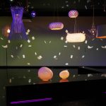 Vorher und nachher, in dem realen Raum der Projektion, sind organische und materielle Leuchten, die austretendes Licht hinauspumpen. Ursprüngliche Körper, die dem Licht Form geben, eher als Designobjekte und Leuchtinstrumente, sind sie Beobachter der Konstruktion und der Destruktion, die sich zyklisch inszenieren. Stille und dauerhafte Zeugen, Überbringer des Lichtes, im Rausch.