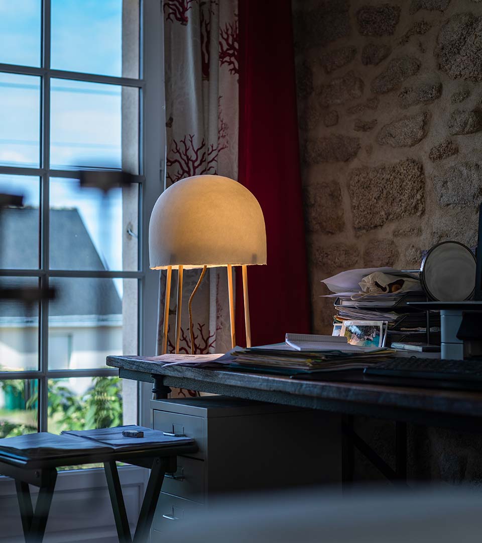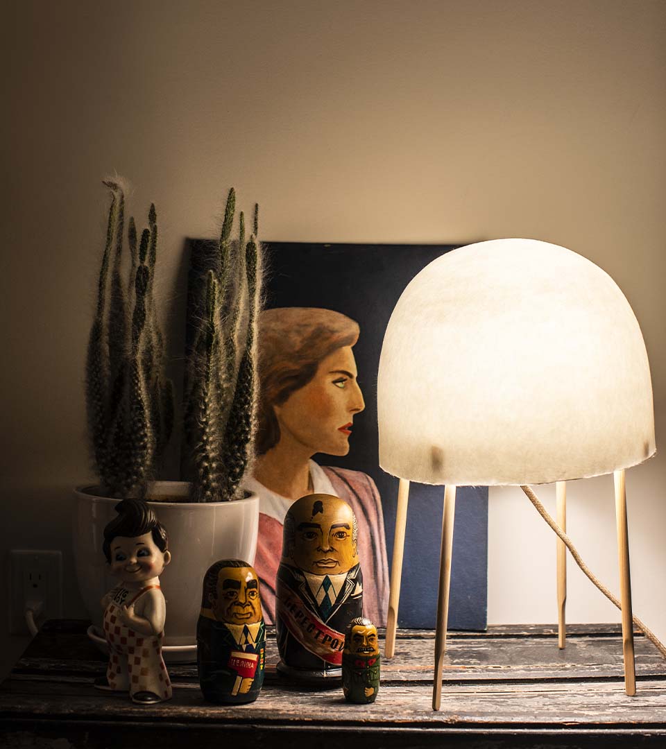 The partnership between Italian designer Luca Nichetto and the Japanese studio Nendo has given rise to a project with a poetic and craft-based soul. The lamp recalls a marine creature dancing lightly, cradled by a suffused light, hence the name: Kurage, which is Japanese for jellyfish.