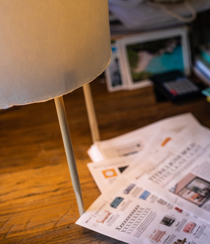 Japanese Washi paper is made with the prized bark of the mulberry tree. This smooth and at the same time porous paper filters light to create a relaxed, warm and emotion-packed atmosphere.