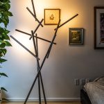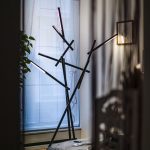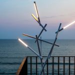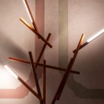 Adjustable, independently-operated LED light sources are incorporated into the end of three of the tubular elements to vary the lighting effect. The structure is rendered all the more understated by the “touch” switches.