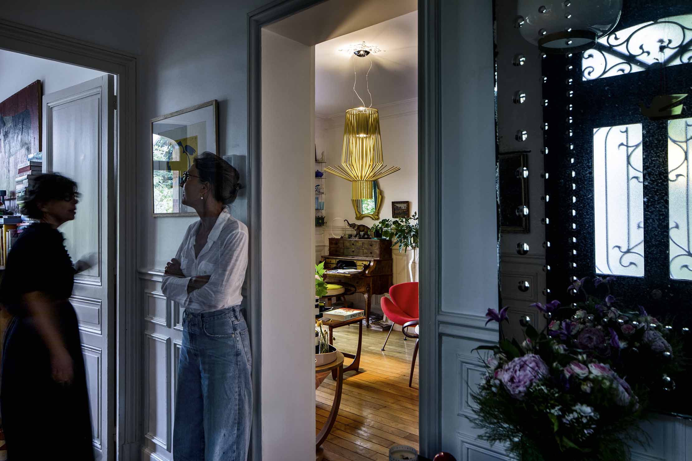 Volumi leggeri che contengono la luce e al contempo la lasciano filtrare nello spazio. Una lampada a sospensione con doppia sorgente luminosa a LED che illumina il piano sottostante, creando contemporaneamente magici giochi di luce e ombre su pareti e soffitto.