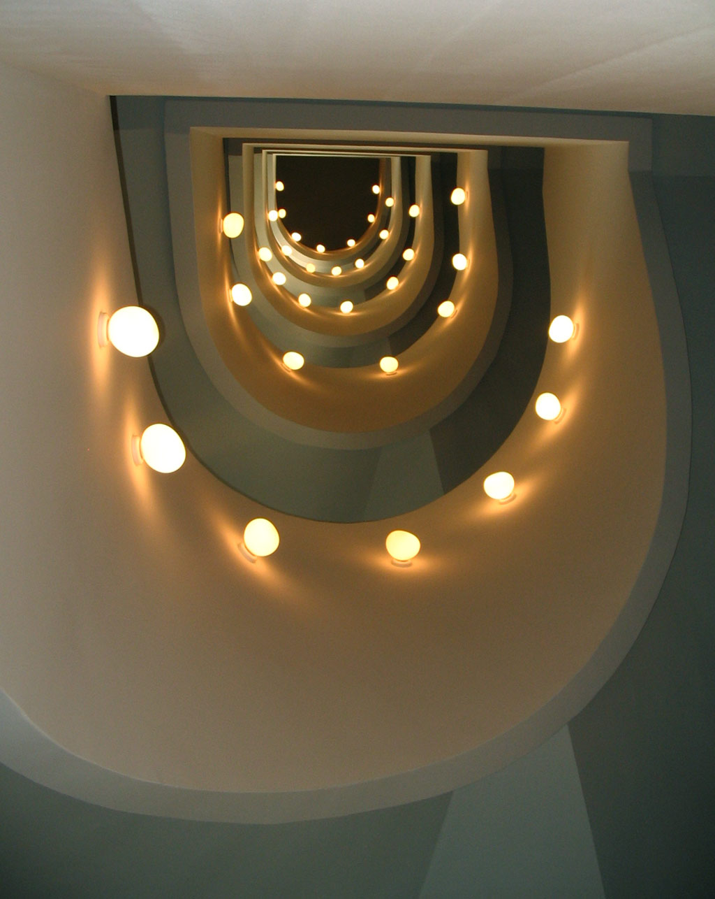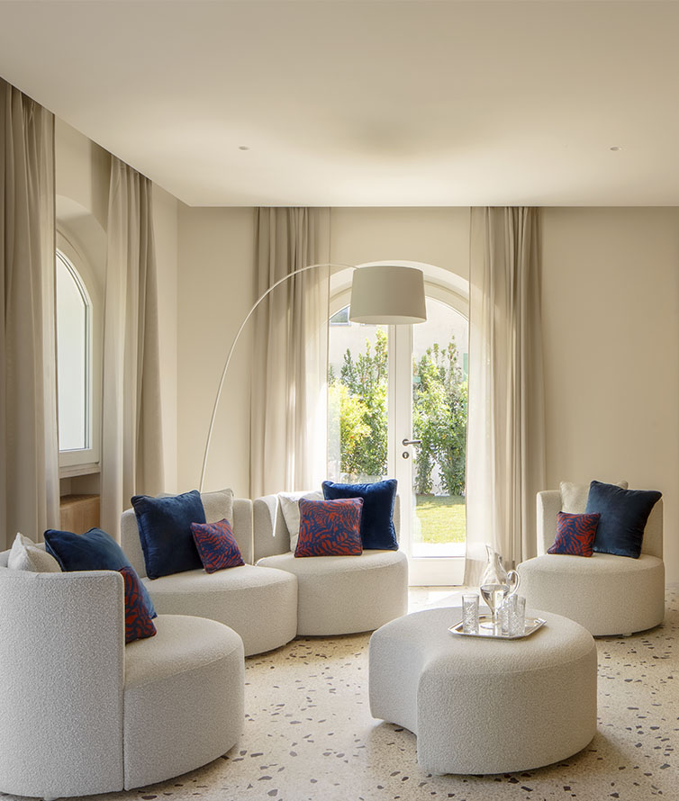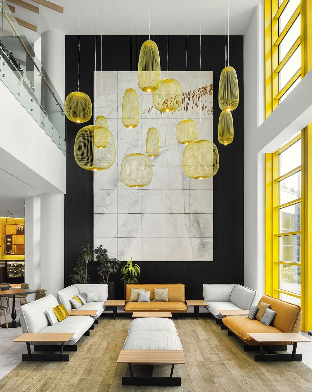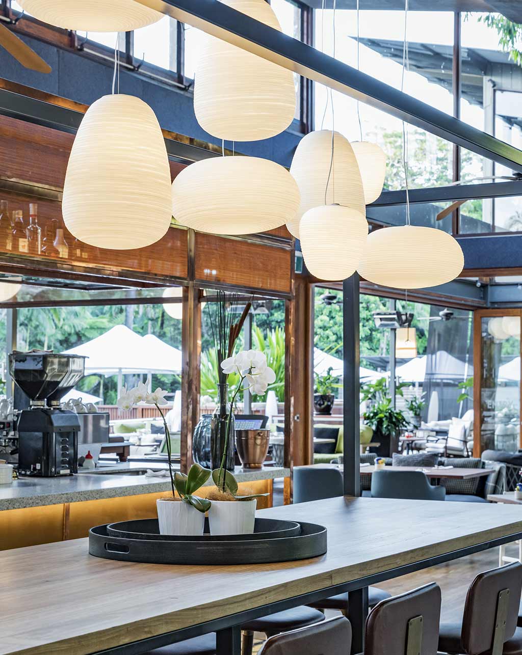 Las lámparas Gregg combinan armoniosamente con el blanco de los espacios comunes exteriores de este hotel, ubicado en un antiguo convento. Acogedores glorietas, situadas estratégicamente, crean ambientes más cálidos e íntimos en el gran espacio abierto. Dentro de estas islas, las formas orgánicas y suaves de las lámparas Gregg outdoor, dispuestas en varios tamaños y alturas, ayudan a decorar, iluminar y suavizar la arquitectura limpia y la rigurosa geometría de la plaza.
