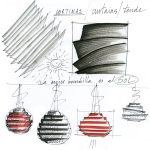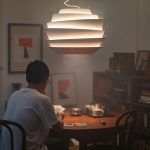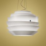Una esfera luminosa formada por bandas irregulares que actúan como superficie reflectante en el interior y como difusor en el exterior, creando un suave y fascinante resplandor. Una lámpara de suspensión que cambia según el punto de vista del observador. Se encuentra disponible también en versión de pared.