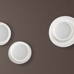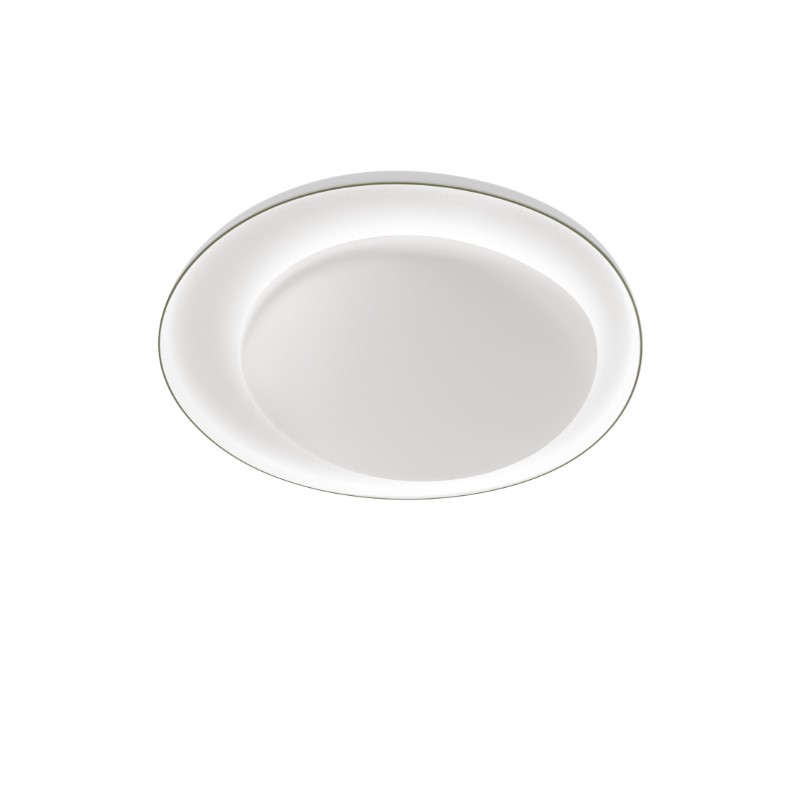 Lámpara de pared y techo de luz reflejada y difusa y de diseño seductor que recuerda la visión aérea de un archipiélago que irradia sus matices describiendo áreas concéntricas. Bahia Mini mantiene el impacto visual original del modelo Bahia, pero con un tamaño reducido. Formada por dos platos ovalados en policarbonato mate blanco estampados por inyección y montados asimétricamente. El plato más grande actúa como fijación de pared, el plato central esconde la parte luminotécnica. Amuebla el espacio con un grosor reducido, gracias también a la posibilidad de crear composiciones múltiples junto con el modelo más grande, para dibujar archipiélagos luminosos en la pared y el techo.