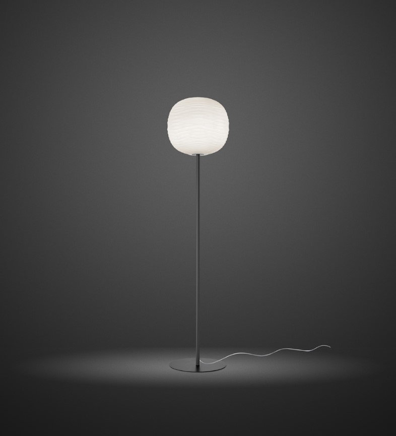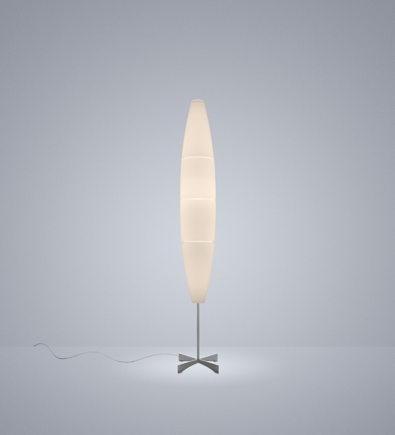 Transversal y acogedora, la lámpara de pie Birdie es una reinterpretación en clave contemporánea de la clásica lámpara con pantalla. Discreta en la versión blanca, se viste con un garboso protagonismo en los demás colores.