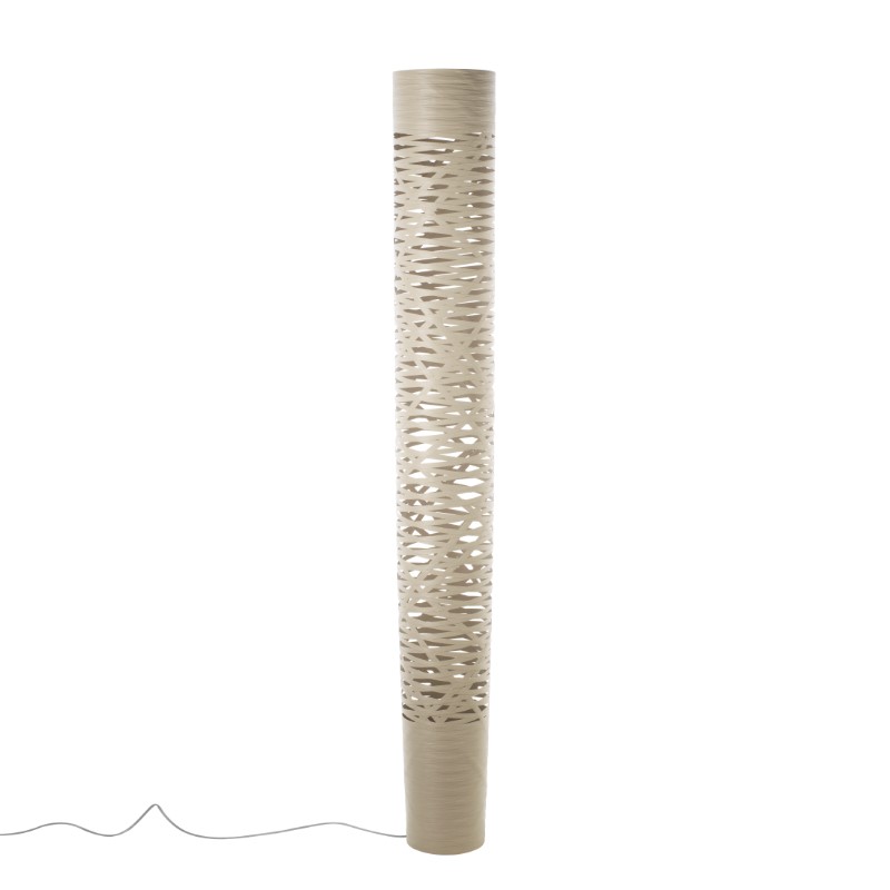 Con su trama de fibra de vidrio y resina que se enrolla como una cinta, la lámpara de pie Tress crea un extraordinario juego de formas, luces y sombras que se proyectan en el ambiente. En la versión grande dispone de dos fuentes luminosas con encendido separado. Una idea de iluminación original, que se ha convertido ya en un icono.