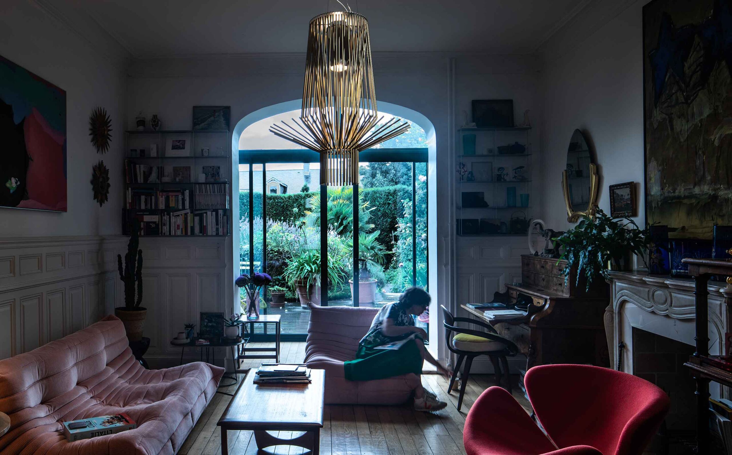 Volúmenes ligeros que contienen la luz y, al mismo tiempo, la dejan filtrar en el espacio. Una lámpara de suspensión con doble fuente luminosa de LED que ilumina el plano inferior, creando al mismo tiempo mágicos juegos de luz y sombras sobre paredes y techo.