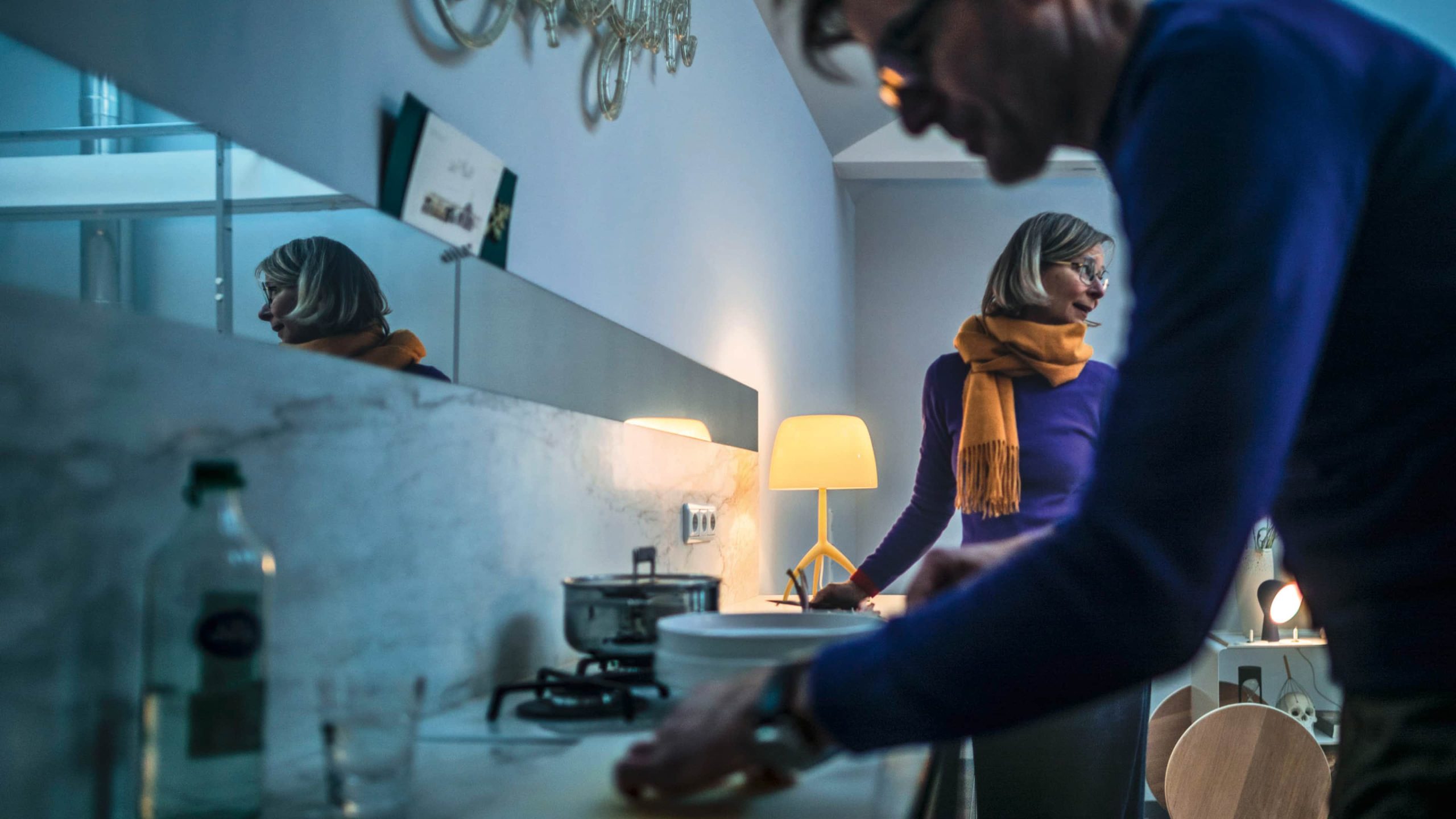 Para nosotros es un placer y también un trabajo. Yo, Markus, soy arquitecto de interiores; Sandra se encarga de comunicación en una histórica fábrica alemana de porcelana. Pero los objetos son nuestra pasión. Todos, incluso los que antes se llamaban adornos, que es simplemente una cosa bonita que te da felicidad. Así es como abrimos nuestra galería de diseño cuando vivíamos en Colonia; ahora está cerrada, pero seguimos vendiendo en línea. Tenemos un pequeño garaje-almacén donde guardamos las piezas. Muchas, muchísimas las usamos en casa, las sillas por ejemplo, tenemos más de veinte, desde las de diseño hasta las que hemos encontrado en mercadillos. No hay un rincón del corazón en casa, la vivimos toda, en todos los rincones, igual que cambiamos de sitio y utilizamos todas las sillas. Pero hay un ritual que siempre es el mismo. Me refiero al café de la mañana, un auténtico expreso, hecho con la cafetera moka. En una pequeña taza de porcelana blanca que parece un papel doblado muy fino. El primer destello de luz del día.