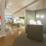I visitatori possono anche esplorare la nuova collezione HOBA di Ludovica Serafini + Roberto Palomba, che esalta la bellezza senza tempo del vetro soffiato con un inaspettato design anti-geometrico. A completare l’esposizione la lampada FREGIO, disegnata da Andrea Anastasio e realizzata in collaborazione con la storica Bottega Ceramica Gatti di Faenza. Fregio è un bassorilievo floreale in ceramica che riesce a unire il sapere artigianale e ancestrale della ceramica decorata alla modernità .