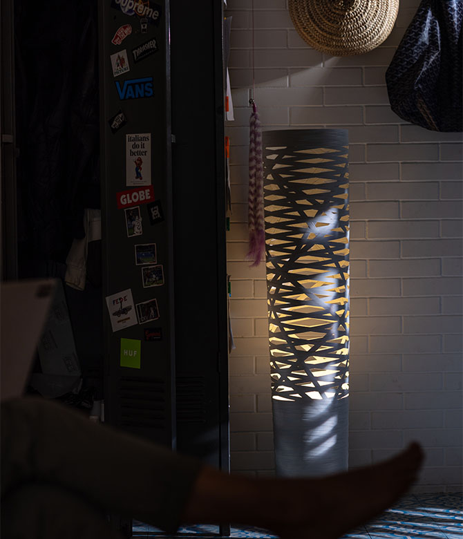 La séduction d’une tresse féminine est l’inspiration pour Tress. Un ruban qui devient la structure et la décoration de la lampe. Une idée de conception transformée en réalité grâce au développement d’un processus à la fois technologique et artisanal original.