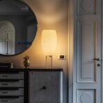 Lampe de table fournissant une lumière diffuse. Diffuseur en verre soufflé à la main, brillant et à cinq couches. À l’intérieur, la couche de verre jaune pâle « pagliesco » rend la lumière plus chaude et la couleur plus intense. La version « blanc chaud » est de couleur ivoire lorsqu’elle est allumée et reste blanche lorsqu’elle est éteinte. La base est constituée d’un cylindre en PMMA totalement transparent, fraisé selon le design et poli miroir à la main. La base est équipée d’un film de protection antistatique transparent. Le verre est fixé à la base au moyen d’un écrou annulaire en forme de verre, l’interrupteur marche/arrêt sur le câble électrique transparent sortant d’un évidement oblique de la base. La base est emballée dans un sac personnalisé fabriqué dans un matériau spécifique résistant aux rayures, qui peut être réutilisé pour le nettoyage de la base. L’ouverture du verre est marquée, l’ampoule est en vue et joue un rôle esthétique. L’ouverture du verre est marquée, l’ampoule est en vue et joue un rôle esthétique.