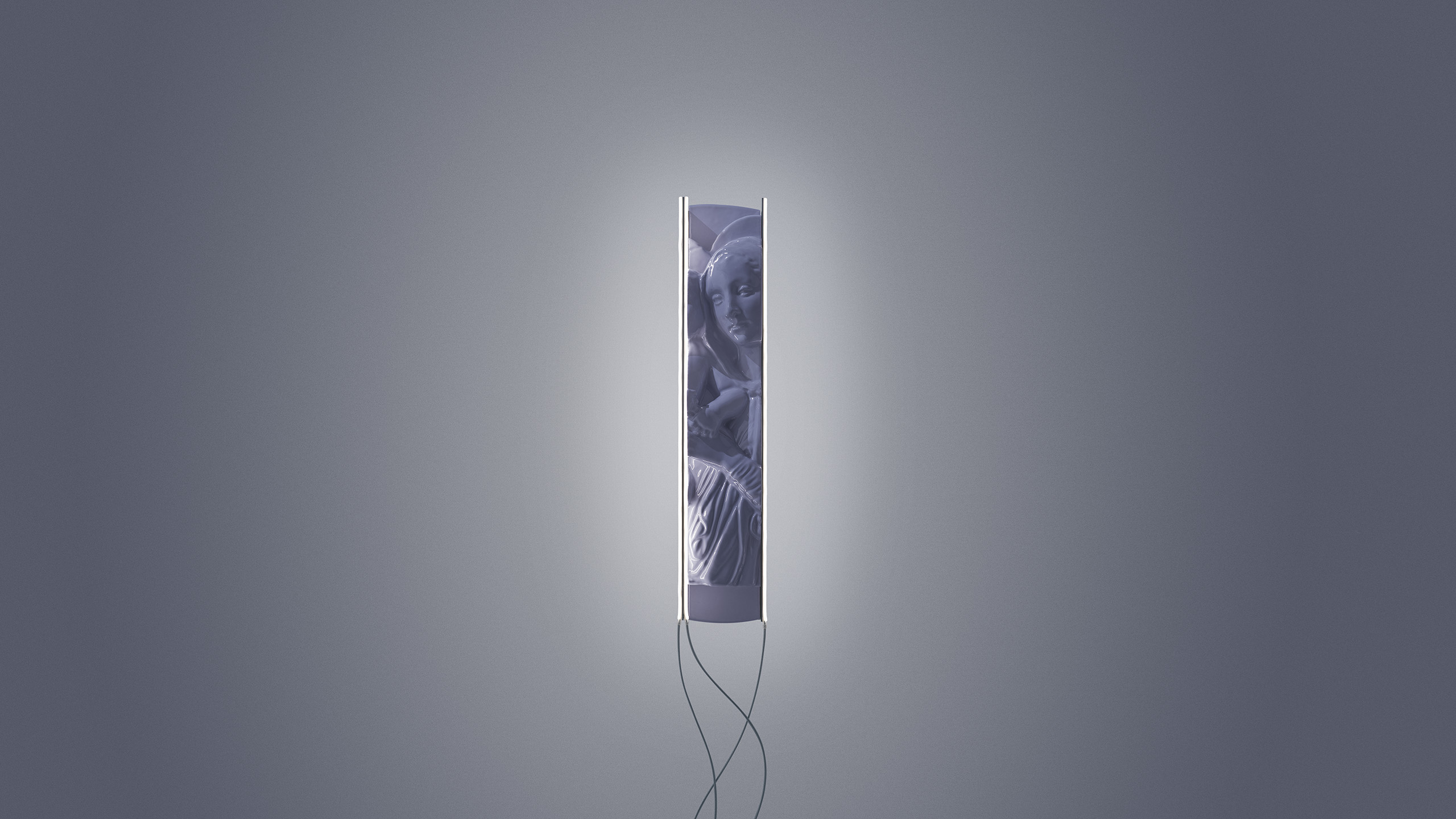 Née du projet de recherche sur la lumière et la céramique « Battiti », Intervallo est une œuvre dans laquelle la source lumineuse est utilisée comme matériau. Placée de part et d’autre d’un bas-relief en céramique, elle construit des formes et des volumes, réinterprétant de manière inédite une icône familière de la tradition figurative européenne. Une sculpture qui devient une applique.