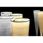 Ha dimensioni importanti e un design seducente e slanciato la lampada da terra Mite, realizzata con un innovativo mix di fibra di vetro e fili di carbonio o Kevlar ® che funge contemporaneamente da decoro e struttura. Vincitrice del premio Compasso d’Oro ADI.