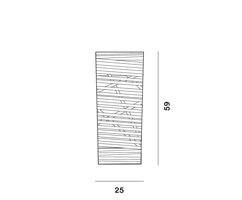 Applique fournissant une lumière indirecte et semi-diffuse. Le diffuseur en matériau composite à base de fibre de verre est fabriqué en moulant le ruban sur un moule avec contrôle automatique du pas/dessin, puis peint à la peinture liquide. Plaque de fixation murale et cadre, qui abrite la partie technique d’éclairage, en zamak moulé sous pression avec revêtement par poudre époxy de couleur aluminium.