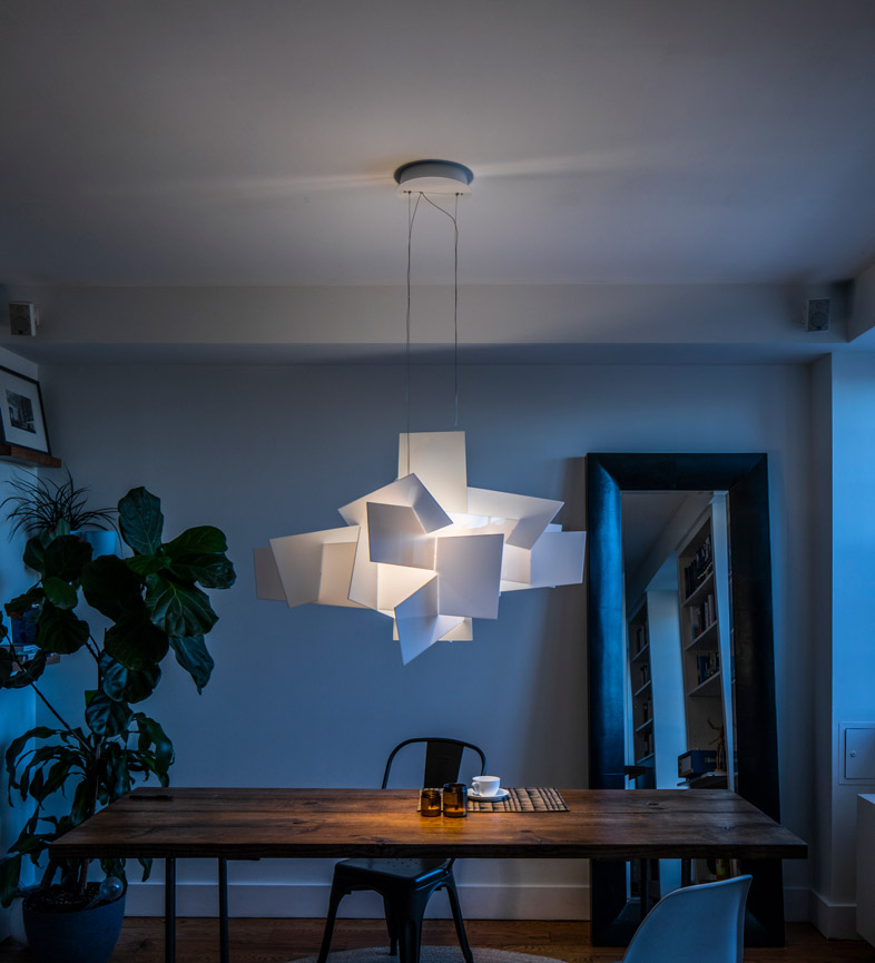 Le parrainage de la Biennale de Venise de 2008 à 2015 a été l’occasion d’explorer la polyvalence de la collection Foscarini, y compris pour répondre aux besoins des grands environnements. Dans la librairie de la Biennale, les lampes ont donné un caractère dynamique et contemporain à l’architecture industrielle des espaces de l’Arsenale, en remplissant les hauteurs avec des compositions qui jouent sur la répétition et la modularité. Plass, avec son grand volume transparent, sait insuffler présence et légèreté en même temps, tandis que le volume déconstruit de Big Bang – dans le cadre du projet Foscarini Evolution – crée des architectures lumineuses uniques qui prolongent sa valeur scénique déjà accentuée. Dans les espaces dédiés à la consultation et aux expositions, Twiggy et Touareg contribuent à une atmosphère plus intime, parfaite pour des espaces de réflexion.