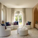 Nichée dans la Riviera toscane, les villas de l’Augustus Hotel & Resort allient le charme d’une demeure historique à une élégance contemporaine. Les lampes Foscarini conçues par Marc Sadler, choisies pour les entrées, garantissent un accueil de caractère, s’intégrant et valorisant le style distinctif de chaque résidence. Dans la Villa Ala Anita, la lampe Mite, récompensée par le Compasso d’Oro ADI, constitue un point focal qui s’harmonise avec les riches textures des intérieurs. À l’entrée de la Villa Ala Bianca, nous trouvons Twiggy, dont l’arche flexible évoque avec élégance les courbes architecturales qui définissent l’espace.