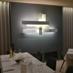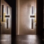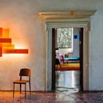 異なるマテリアルとサイズのトーンオントーンカラーの厚板を平行に重なり合わせたデザイン。デザイナーVicente Garcia Jimenez の故郷ラ・マンチャの高原の風景をモチーフにしたウォールランプです。