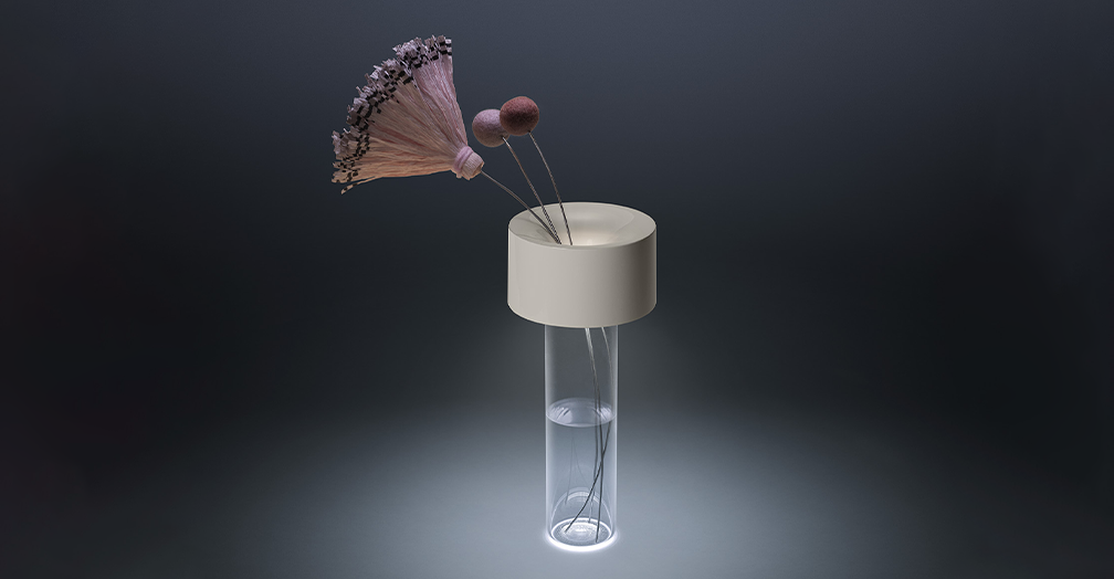 透明感、軽やかさ、そして雰囲気を設定する詩的な光。Fleurは、充電可能なテーブルランプで、二つの機能を持っています:より自然な照明機能と、水と生花を入れるという予期せぬ機能です。