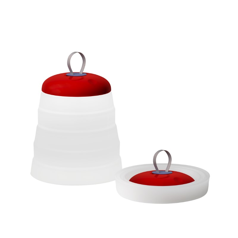 Lampada da tavolo senza fili, da esterno o da interno, da appendere o appoggiare dove si vuole. Intensità luminosa regolabile su tre livelli. Si richiude su sé stessa, per un ingombro minimo quando non in uso.