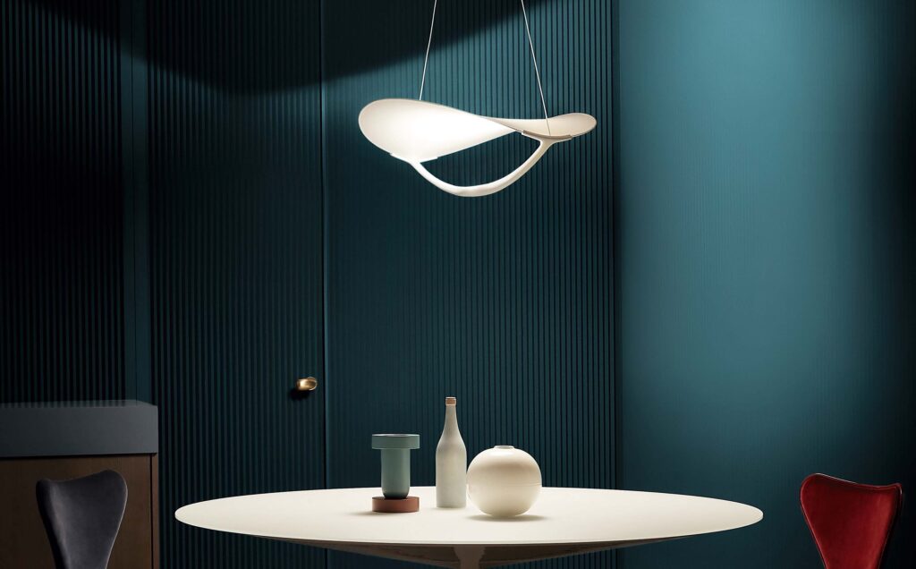 Dalla luna prende il nome e una luce che affascina: riflessa sul piano sottostante e diffusa verso il soffitto grazie allo speciale telo con alta riflettività della luce. Una lampada a sospensione di design che illumina completamente una stanza mantenendosi morbida e avvolgente.