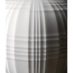 拡散光と下方向への直接光を放つペンダントランプ。高浮き彫りが施されたハンドメイド吹きガラス製のディフューザーは、内側に縦と横のラインが彫り込まれた型で制作。ディフューザーは、下側に開口部があり、真下を直接光で照らしつつ、マット仕上げのガラスを通して周囲に光が広がります。ガラスに組み込まれたマット仕上げの透明射出成型ポリカーボネート製のリングナットでランプホルダーに取り付け。マット仕上げの透明射出成型ポリカーボネート製のランプホルダーサポート。ステンレススチール製サスペンションケーブル・クリア電気ケーブル。亜鉛メッキメタル製ブラケット・光沢仕上げのホワイトバッチ塗装ABSカバーからなるシーリングキャノピー。