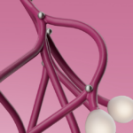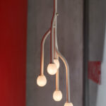I raccordi tra i bracci e la struttura, anziché essere nascosti, diventano dettagli preziosi: piccole sfere metalliche a contrasto, come boccioli o gemme.