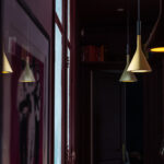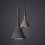 Uno speciale cemento dall’amalgama esclusiva è protagonista delle lampade Aplomb, un modello a sospensione che unisce raffinatezza e matericità proiettando un fascio di luce concentrato verso il basso.