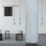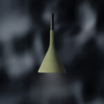 Lampada a sospensione da esterno a luce diretta verso il basso, proposta con un lungo cavo per essere avvolta ad esempio attorno a un pilone o a un ramo di un albero. Il diffusore in cemento è composto di uno speciale amalgama colorato con pigmenti, realizzato colando in uno stampo la miscela fluida. La parte illuminotecnica all’interno del cono è costituita da un involucro in alluminio che funge da dissipatore per il LED COB schermato da una lente in policarbonato trasparente. Cavo elettrico rivestito in neoprene nero per esterno, senza rosone, provvisto di morsettiera e spina Schuko. Kit avvolgicavo disponibile su richiesta. I colori della versione Aplomb outdoor sono diversi dai colori della versione indoor.