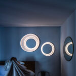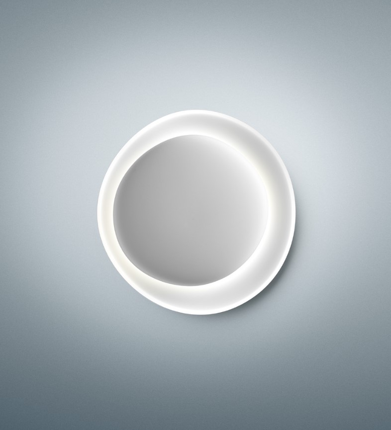 Una soluzione versatile,a luce riflessa e diffusa, che offre flessibilità di installazione sia come lampada da soffitto sia a parete. Il suo design seducente richiama la visione aerea di un arcipelago che irradia le sue sfumature descrivendo aree concentriche. Formata da tre piatti ovaloidi in policarbonato opaco bianco stampati ad iniezione e montati asimmetricamente. Il piatto più grande funge da attacco a parete, i due piatti centrali celano la parte illuminotecnica e l’alimentatore elettronico. Arreda lo spazio con uno spessore ridotto, anche grazie alla possibilità di creare composizioni multiple insieme al modello più piccolo, per disegnare arcipelaghi luminosi a soffitto.