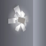 Un’esplosione di piani e ombre incrociate, da cui si genera un’illuminazione diffusa e riflessa allo stesso tempo: da questa idea estrema e scenografica nasce la lampada da parete e soffitto Big Bang.