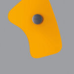Lampada da parete a luce riflessa e diffusa. Combinando le diverse forme e colori disponibili, si ottiene un effetto di grande impatto grafico e arredativo a parete. Montatura e rosone a parete in metallo verniciato a polveri epossidiche. Diffusore in vetro verniciato colorato o bianco satinato, disponibile in 5 forme di misure e colore diversi, fissati alla montatura mediante blocca-vetro decorativo in metallo verniciato a polveri epossidiche. La lampada è dotata di cablaggio trasparente con spina e interruttore on/off sul cavo.