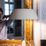 Una lampada da tavolo raffinata, i cui elementi compositivi sono stati ridotti al minimo. Un sostegno in vetro trasparente che quasi scompare alla vista, un cuore luminoso e un diffusore in porcellana che crea un’atmosfera accogliente.