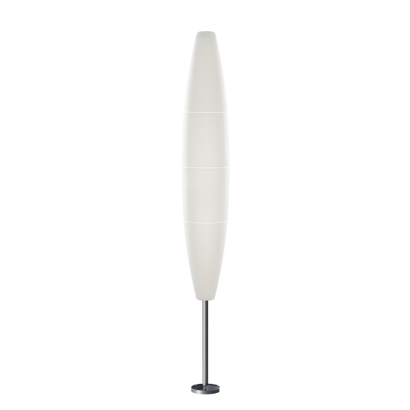 Lampada da terra a luce diffusa. Diffusore formato da un unico elemento in polietilene stampato in rotazionale con invito diretto per l’assemblaggio al supporto. Stelo, base e supporto del diffusore in metallo sottoposti a trattamento di cataforesi in grado di conferire una notevole resistenza alla corrosione e in seguito verniciati a polveri epossidiche. Sono disponibili tre versioni per il fissaggio a terra: base riposizionabile, picchetto o cilindro per interramento. Cavo elettrico rivestito in neoprene per uso esterno senza interruttore, dotato di morsettiera IP 65 e seconda spina Schuko CEE 7/7 IP44. LED retrofit. Adatta ad ambienti umidi.