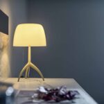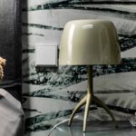 Una lampada da tavolo best-seller elegante e raffinata, nata nel 1990, proposta con una nuova palette cromatica in cui le parti metalliche sono coordinate al colore del diffusore in vetro soffiato, che si illumina di luce e calore a lampada accesa. Una collezione di tinte estremamente attuali, esaltate dalla finitura opaca della base.