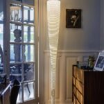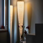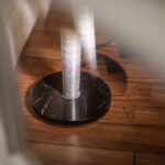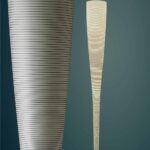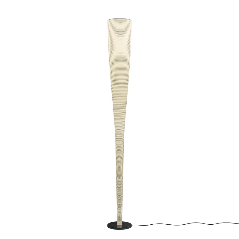 Lampada da terra a luce diffusa e indiretta. Diffusore ottenuto con un processo artigianale che prevede l’applicazione di un filo in carbonio su tessuto di vetro. Base in marmo Marquiña, di colore nero intenso attraversato da venature irregolari di colore bianco o grigio chiaro. Sul cavo nero è presente un dimmer originale Foscarini che funge da regolatore di intensità luminosa graduale e da interruttore on/off.