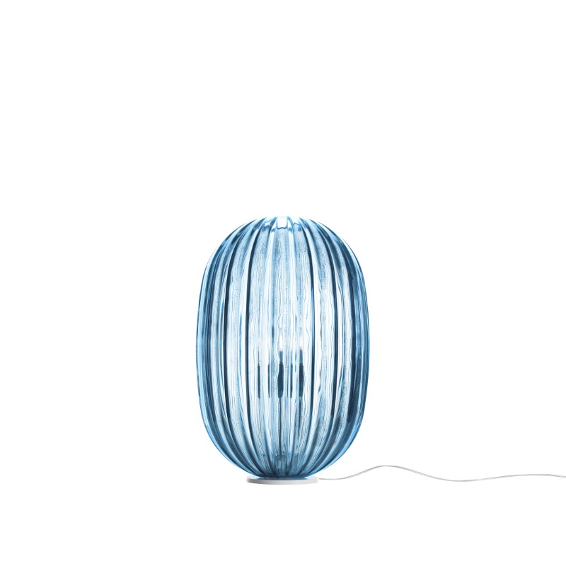 Una lampada da tavolo il cui design interpreta l’immagine di una perla di vetro utilizzando il policarbonato trasparente stampato in rotazionale. Le finiture sono caratterizzate dalle tipiche irregolarità che ricordano il vetro artigianale e fanno vibrare la luce.