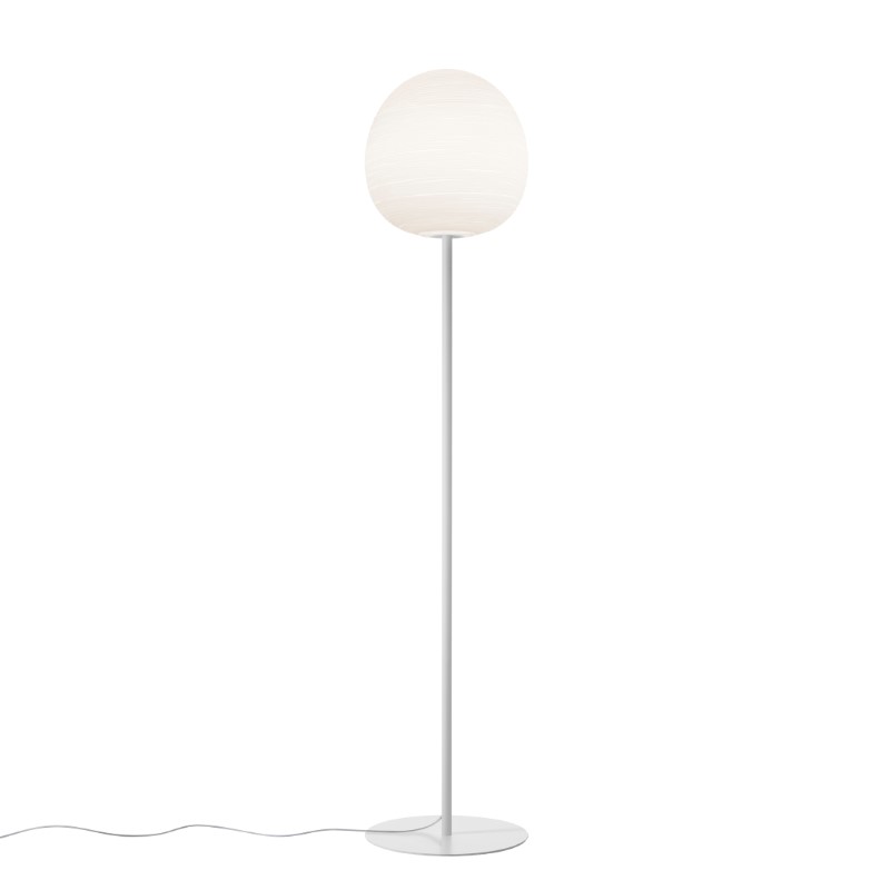 La lampada da terra Rituals XL si distingue per le dimensioni generose del diffusore in vetro soffiato e per la sua luce piena, calda e soffice. Una collezione che si ispira alle lampade di carta della tradizione orientale, realizzata in vetro soffiato a bocca arricchito da sottili incisioni, al contempo decoro e filtro per la luce.