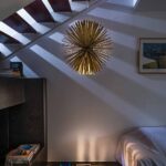 Una lampada a sospensione scultorea e dal forte impatto che è come il sole, dai contorni inafferrabili. Una presenza geometrica ma al tempo stesso fluida, organica. Con doppia fonte luminosa è perfetta per illuminare una stanza o per creare un’atmosfera intima attorno ad un tavolo.