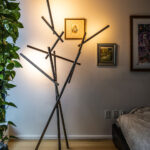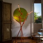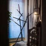 La lampada da terra Tuareg è una composizione tridimensionale che ricorda un assemblaggio di rami e canne – come un’opera di land art – con tre sorgenti luminose a LED con accensione indipendente e orientabili fino a 350° per variare l’effetto luminoso.