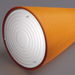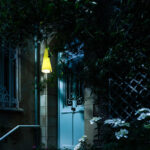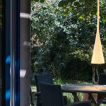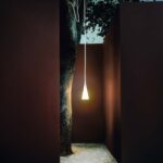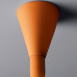 Lampada da sospensione a luce diffusa e diretta. Diffusore conico e tubo in elastomero termoplastico, il cono stampato ad iniezione e il tubo realizzato in estrusione. Diffusore interno conico in policarbonato opalino, schermo in policarbonato traslucido. L’apparecchio viene fornito con morsetto per uso esterno IP44, è inclusa nell’imballo una spina per l’adattamento a lampada da interno e istruzioni per accorciare il tubo. L’interruttore on/off è posizionato all’interno del tubo alla sommità del cono diffusore.