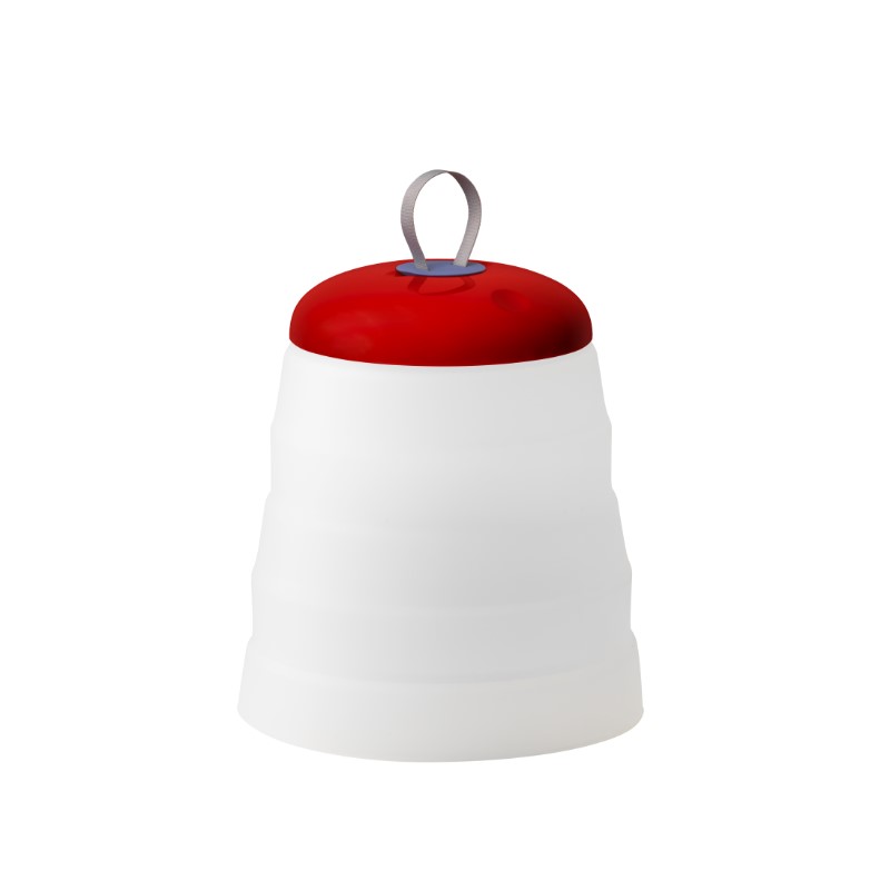 Lampada da tavolo senza fili, da esterno o da interno, da appendere o appoggiare dove si vuole. Intensità luminosa regolabile su tre livelli. Si richiude su sé stessa, per un ingombro minimo quando non in uso.