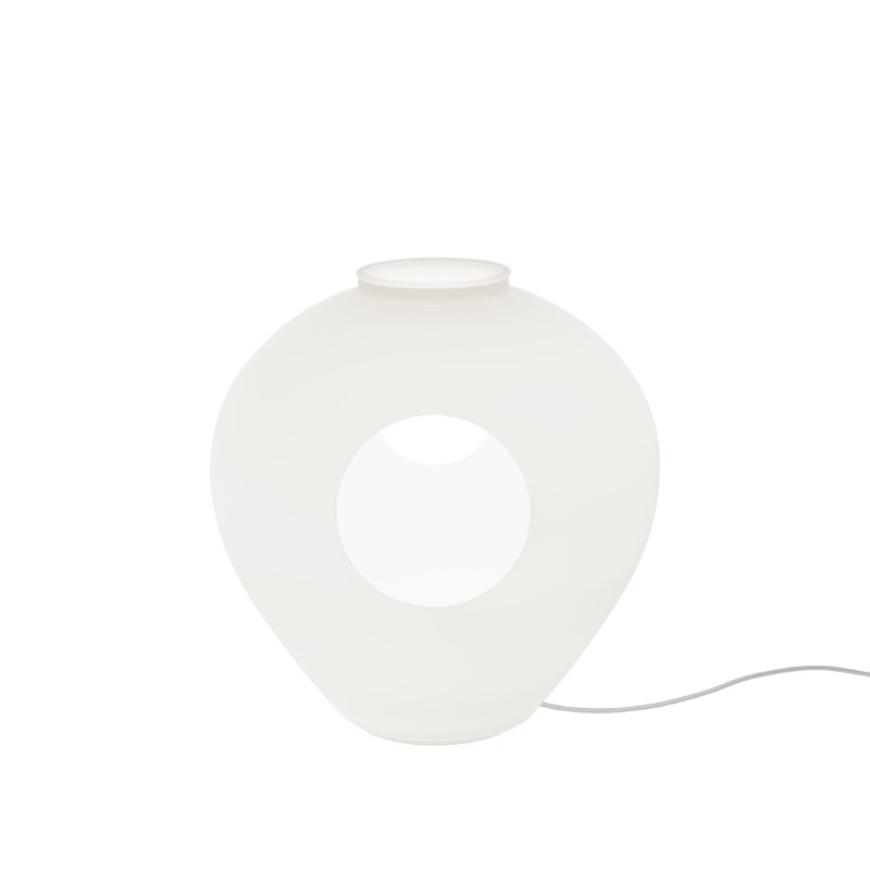 La lampada da tavolo Madre è un oggetto poetico e inaspettato. Il foro che interrompe il grande corpo luminoso al centro crea una visione magica e una luce unica. L’incavo superiore contiene un piccolo vaso dove è possibile inserire dei rami per creare una elegante composizione.